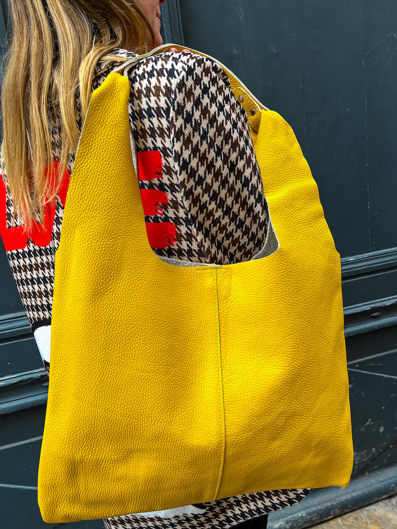 Vous allez adorez ce sac cabas en cuir jaune ! Son design minimaliste s'adapte à toutes les occasions, du quotidient aux sorties plus sophistiquées. Sa couleur jaune apporte une touche moderne et élégante